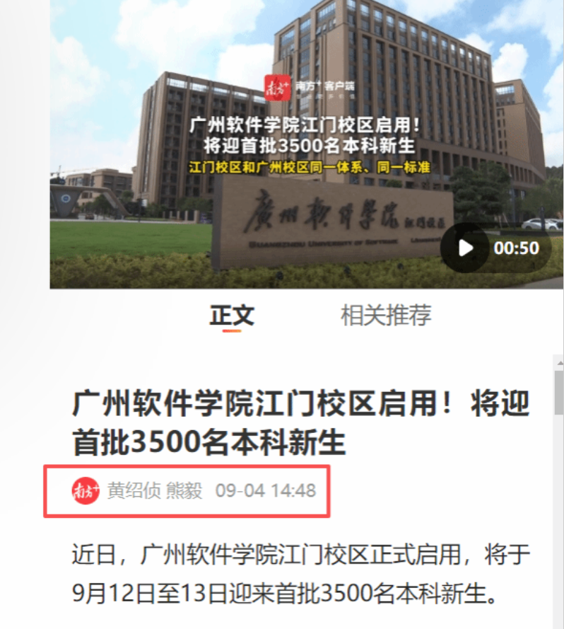 南方日报 近日,广州软件学院江门校区正式启用,将于9月12日至13日迎来首批3500名本科新生。